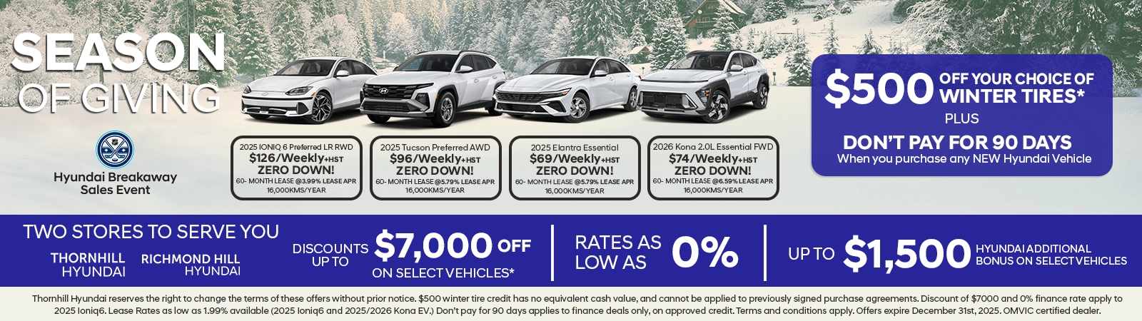 Thornhill Hyundai will have the following amended hours of operation during the Holiday Season: