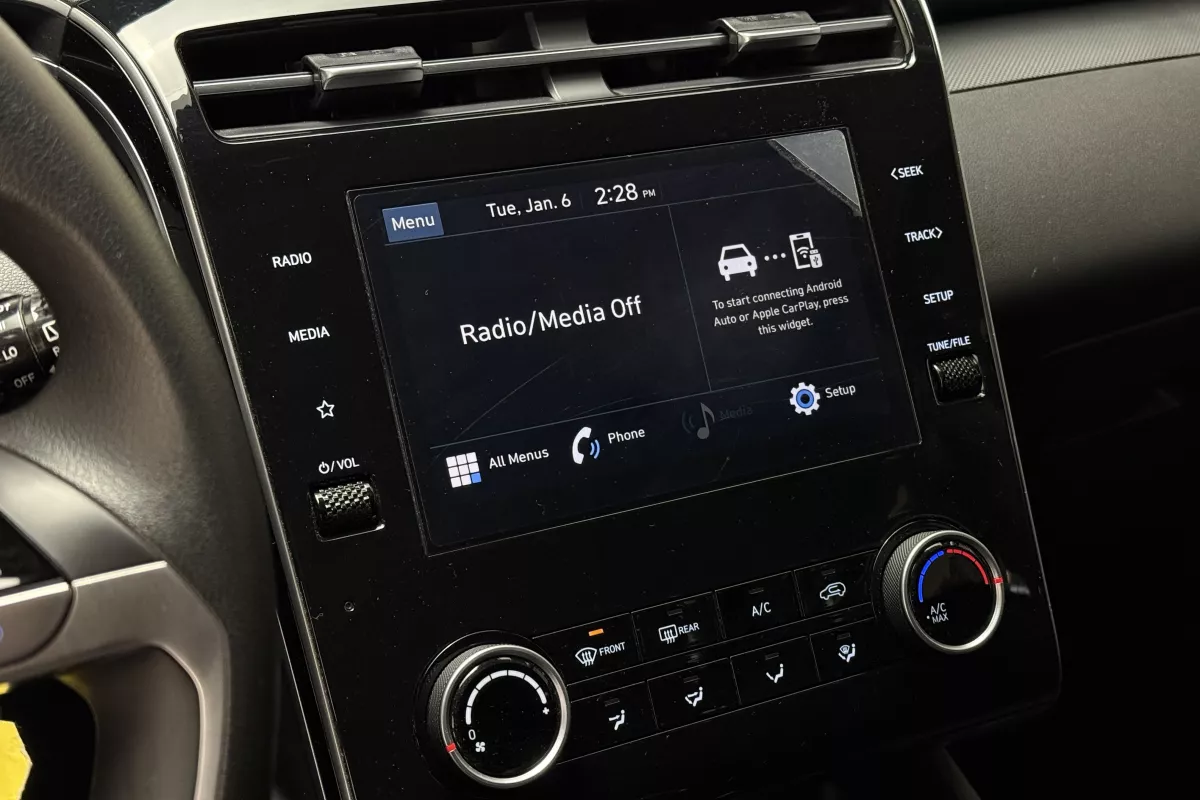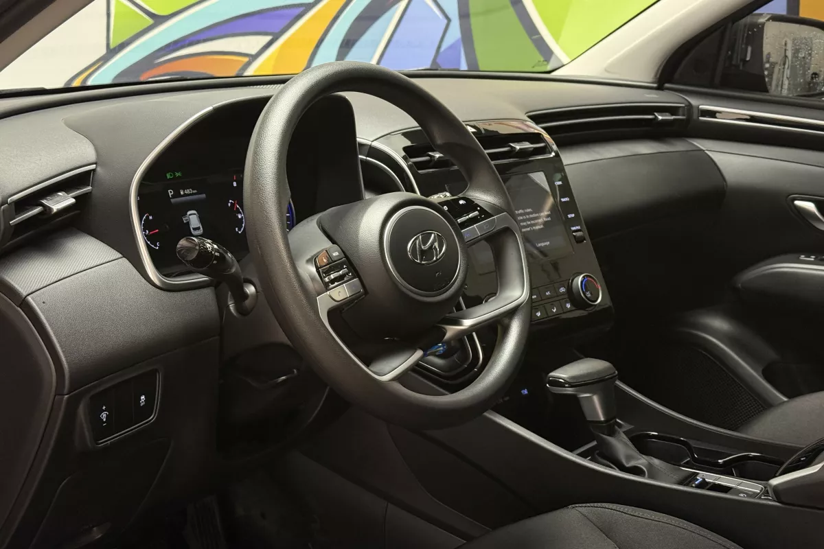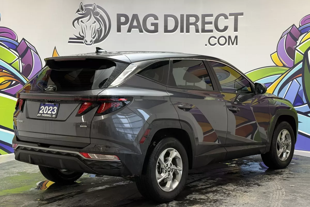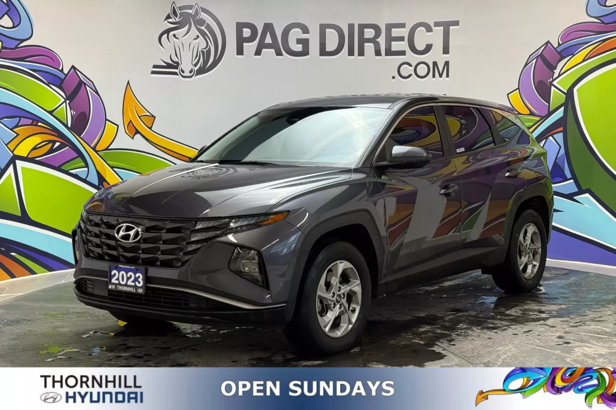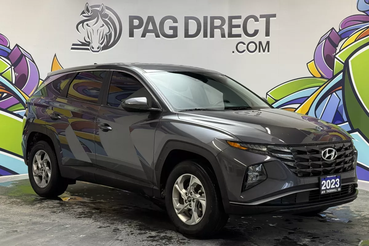 Confident, capable, and redesigned for modern driving, this 2023 Hyundai Tucson Essential AWD delivers excellent value with all-wheel-drive confidence, advanced safety technology, and a bold new design. The Tucson's sharp exterior styling and spacious interior make it one of the most well-rounded compact SUVs on the road today. Equipped with Hyundai's intelligent All-Wheel Drive system, this Tucson is ready for Canadian weather, providing added traction and stability in snow, rain, and changing road conditions. Inside, the cabin offers a clean, modern layout with a touchscreen display featuring Apple CarPlay and Android Auto, allowing seamless access to navigation, calls, music, and apps. Heated front seats add everyday comfort, while Lane Keep Assist, Forward Collision-Avoidance Assist, and a clear backup camera enhance safety and confidence behind the wheel. With selectable drive modes and a smooth automatic transmission, this Tucson is ideal for commuting, family use, or weekend getaways.