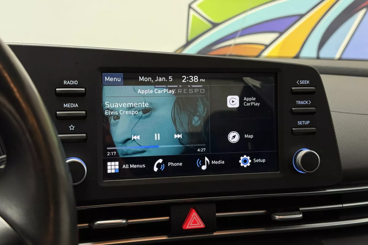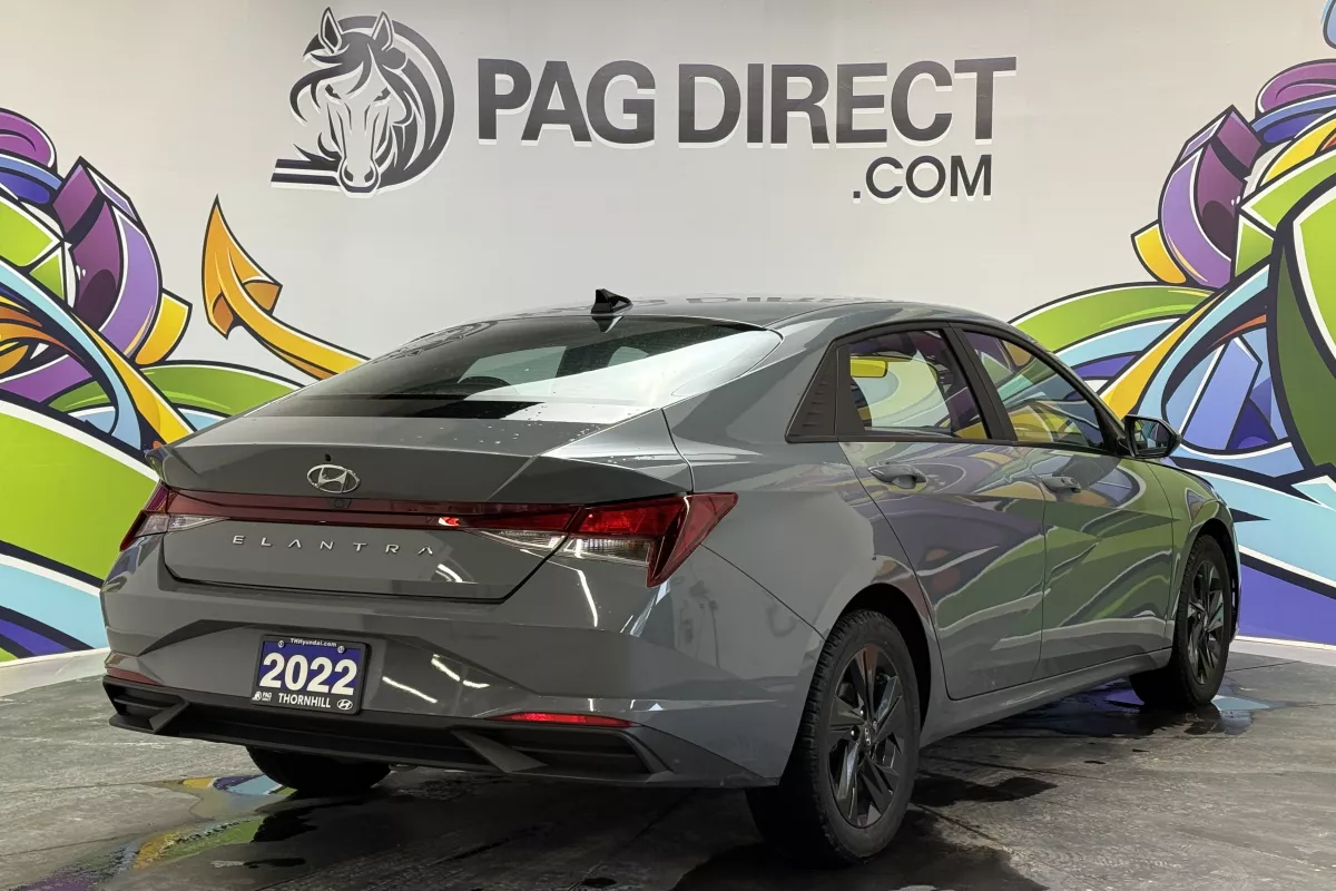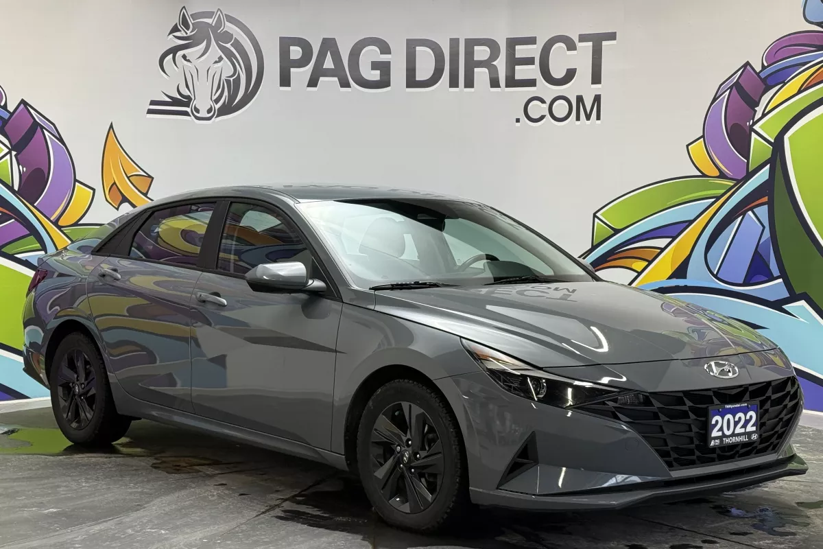 Modern, efficient, and well-equipped, this 2022 Hyundai Elantra Preferred IVT is a stylish compact sedan designed for everyday comfort, safety, and excellent fuel efficiency. With its sleek exterior design, refined interior, and strong suite of Hyundai SmartSense safety features, the Elantra is a smart choice for commuting, city driving, or longer highway trips. Inside, the cabin offers heated front seats and a heated steering wheelperfect for Canadian wintersalong with a clean, driver-focused layout. Dual-zone automatic climate control allows both driver and passenger to stay comfortable, while the intuitive infotainment system supports Apple CarPlay and Android Auto for seamless smartphone integration. Safety and confidence are front and center, with features like Blind-Spot Collision Warning, Rear Cross-Traffic Alert, Lane Keep Assist, and Forward Collision-Avoidance Assist helping support you in daily traffic and busy parking situations. Paired with a smooth IVT automatic transmission, this Elantra delivers a comfortable, fuel-efficient, and easy-to-drive experience.