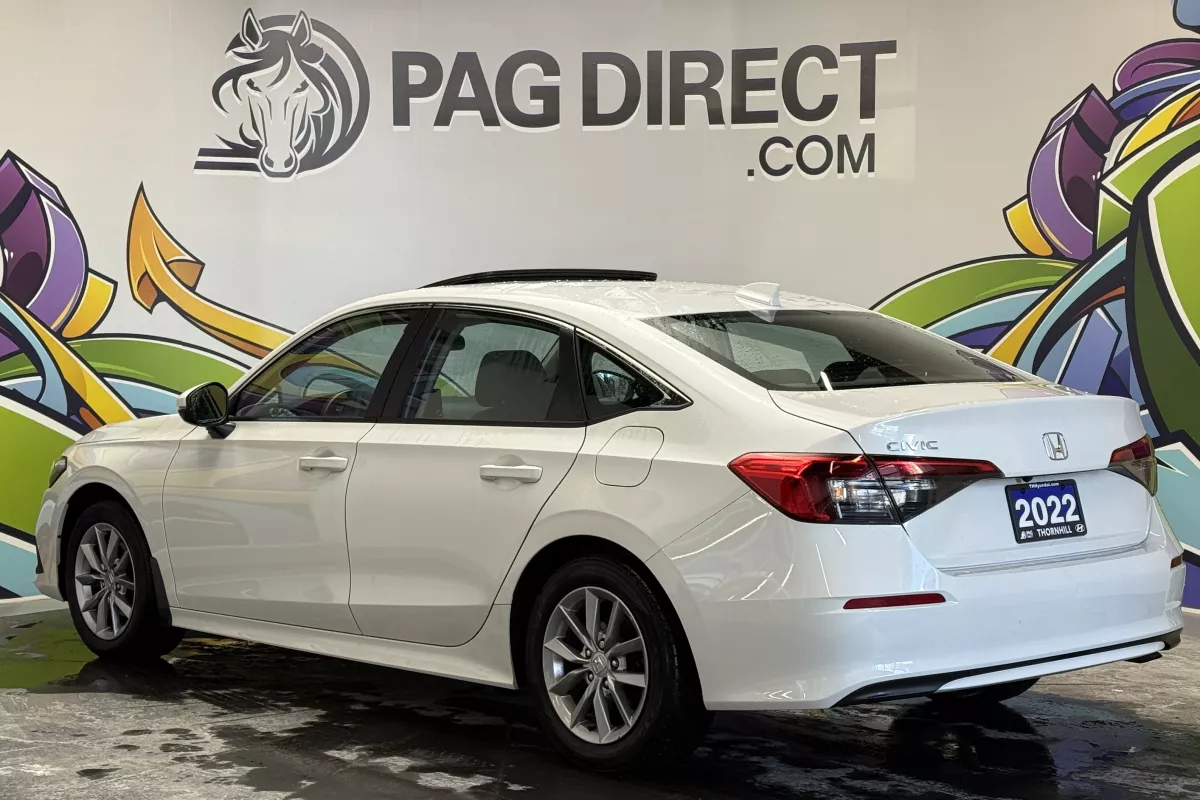 Stylish, efficient, and packed with modern technology, this 2022 Honda Civic EX CVT delivers a refined driving experience with the reliability Honda is known for. Redesigned for the 11th generation, the Civic EX offers a sleek exterior, a comfortable cabin, and advanced safety featuresmaking it an excellent choice for daily commuting or long highway drives. Inside, the cabin feels modern and driver-focused with heated front seats, a heated steering wheel, and a power sunroof that adds natural light and an open feel. Dual-zone automatic climate control allows both driver and passenger to stay comfortable year-round, while the clean dashboard layout keeps everything intuitive and easy to use. Honda Sensing safety technology comes standard, including Adaptive Cruise Control, Lane Keep Assist, and Blind-Spot Monitoring, giving you added confidence in traffic and on the highway. Powered by a fuel-efficient engine paired with a smooth CVT transmission, this Civic balances responsive performance with excellent fuel economy.