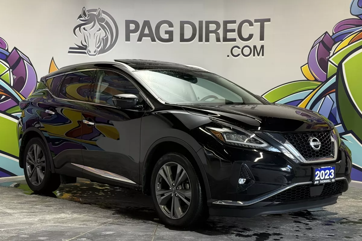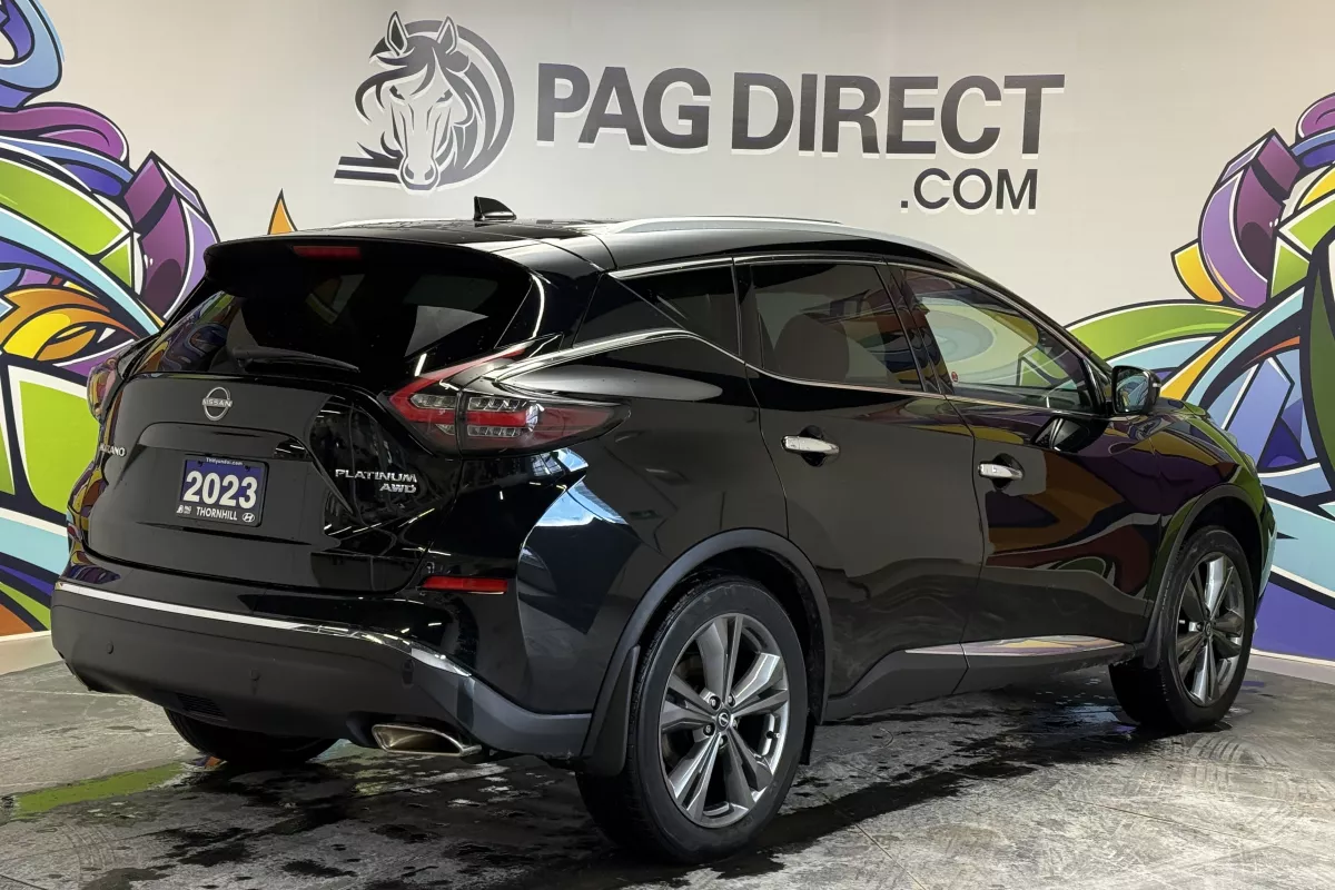 Refined, powerful, and fully loaded, this 2023 Nissan Murano Platinum AWD delivers premium comfort with confident all-wheel-drive performance. Its bold exterior styling pairs perfectly with a luxury-focused interior designed to make every drive feel effortless. Inside, you're treated to leather-appointed seating, heated and ventilated front seats, heated rear seats, a heated steering wheel, and a panoramic moonroof that opens up the cabin. The intuitive touchscreen with navigation, Apple CarPlay & Android Auto, and a Bose premium sound system keeps you connected and entertained, while the 360 Around View Monitor and advanced driver-assist features provide confidence in every situation.